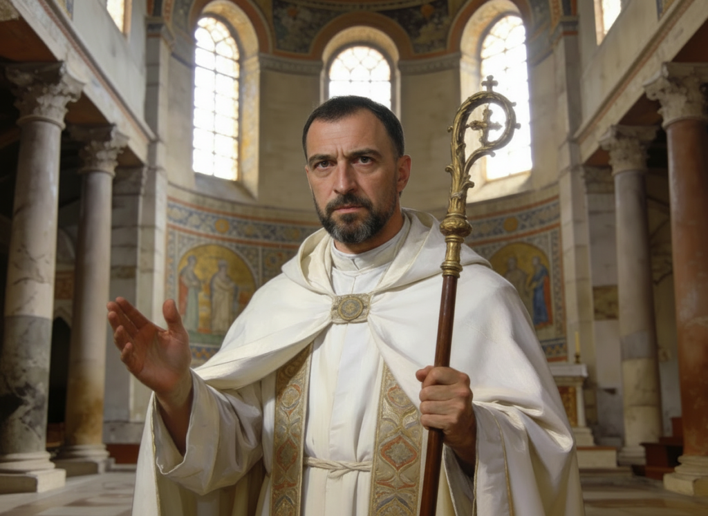 Ambrosio se convirtió pronto en maestro de doctrina y firme defensor de la Iglesia frente al poder civil y al paganismo. Se opuso con una firme “resistencia pasiva” al intento de la emperatriz Justina de entregar una basílica a los arrianos, afirmando que el emperador está “en la Iglesia, no sobre la Iglesia”, y estuvo sitiado ocho días con su pueblo, dispuesto al martirio. Más tarde reprendió al emperador Teodosio por la matanza de Tesalónica, exigiéndole penitencia pública antes de admitirlo de nuevo a la Misa, gesto sin precedentes en la relación entre obispos y jefes de Estado. Su intensa labor pastoral, doctrinal y litúrgica —incluida la creación de himnos y el impulso de la lectio divina— marcó profundamente a la Iglesia. Murió en 397, a los 57 años, y fue proclamado Doctor de la Iglesia en 1295.