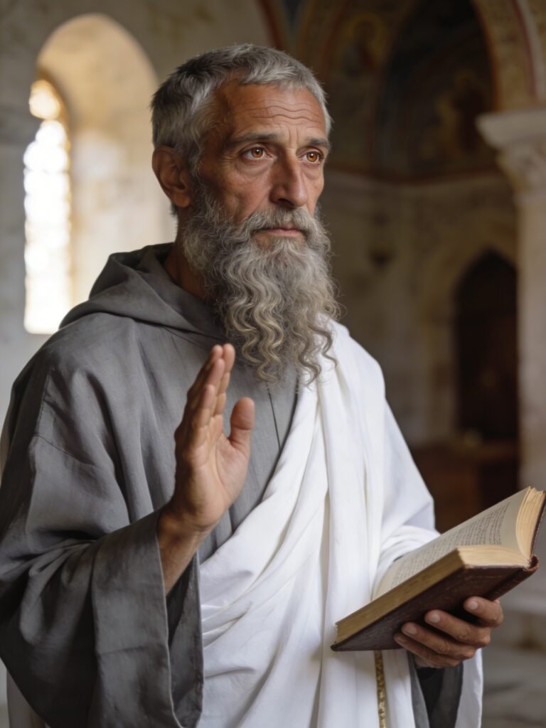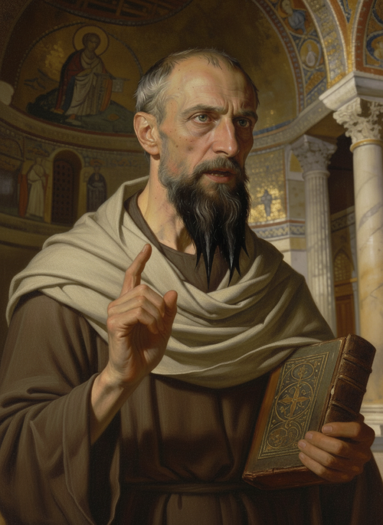 Basilio de Cesarea (c. 329-379), nacido en una familia acomodada de Capadocia, se formó brillantemente en retórica y filosofía en Constantinopla y Atenas, donde trabó amistad con Gregorio Nacianceno. Una crisis espiritual, provocada en parte por su hermana Macrina y el ejemplo de los monjes orientales, le hizo abandonar la carrera mundana y retirarse a una vida ascética junto al río Iris, donde redactó la Regla que marcaría el monaquismo oriental.